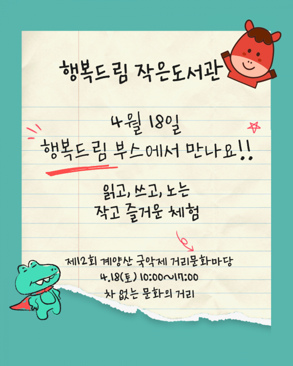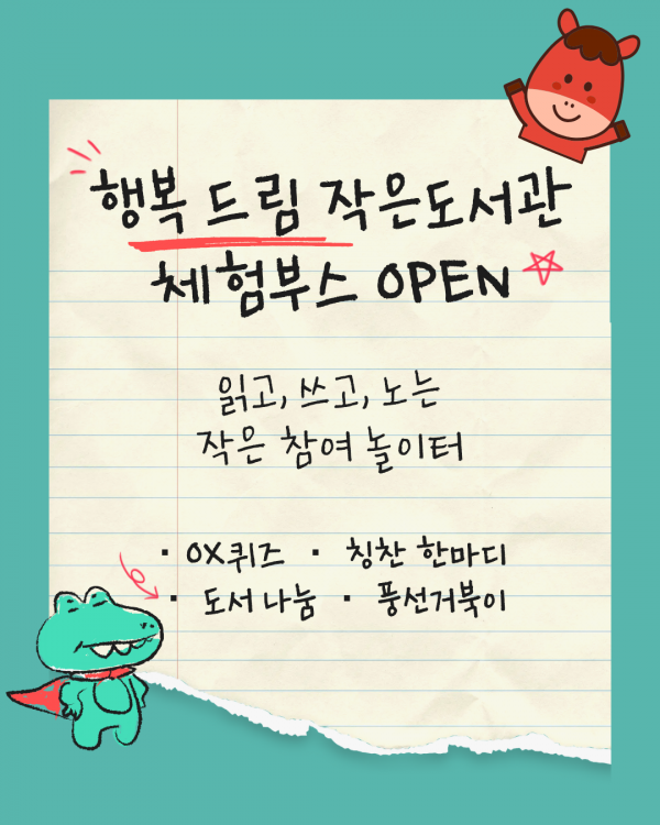 행복 드림 작은도서관 체험부스로 놀러 오세요!